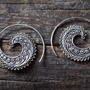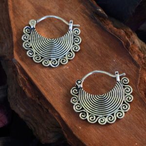 Our Meandros silver plated earrings will travel you throught time. Shaped and carved in such a detailed way that makes sacred wheel earrings amazing.