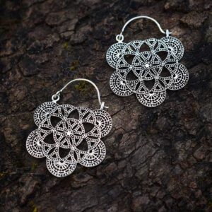 Aesthetic flower of creation silver plated earrings with unique design. A sacred symbol. The symbol of creation, representing the unity of all life. Shaped and carved in such a detailed way that makes flower of creation earrings amazing.