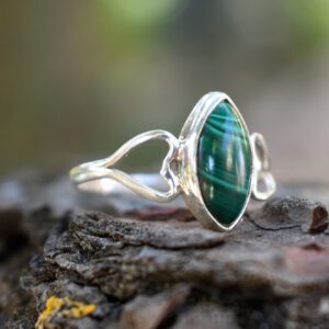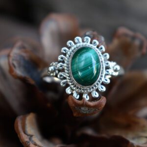 38,00€Discreet, elegant and unique. Our Ersana sterling silver 925 ring is been decorated with malachite semi precious stone. Shaped and carved in each side of the ring in such a detailed way that makes Ersana ring amazing. A ring you will never get bored. -