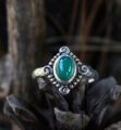 Our Actaea ring will travel you throught time. Beautiful sterling silver 925 ring decorated with genuine crystal clear green onyx semi precious stone. Shaped and carved in each side of the ring in such a detailed way that makes Actaea ring amazing.