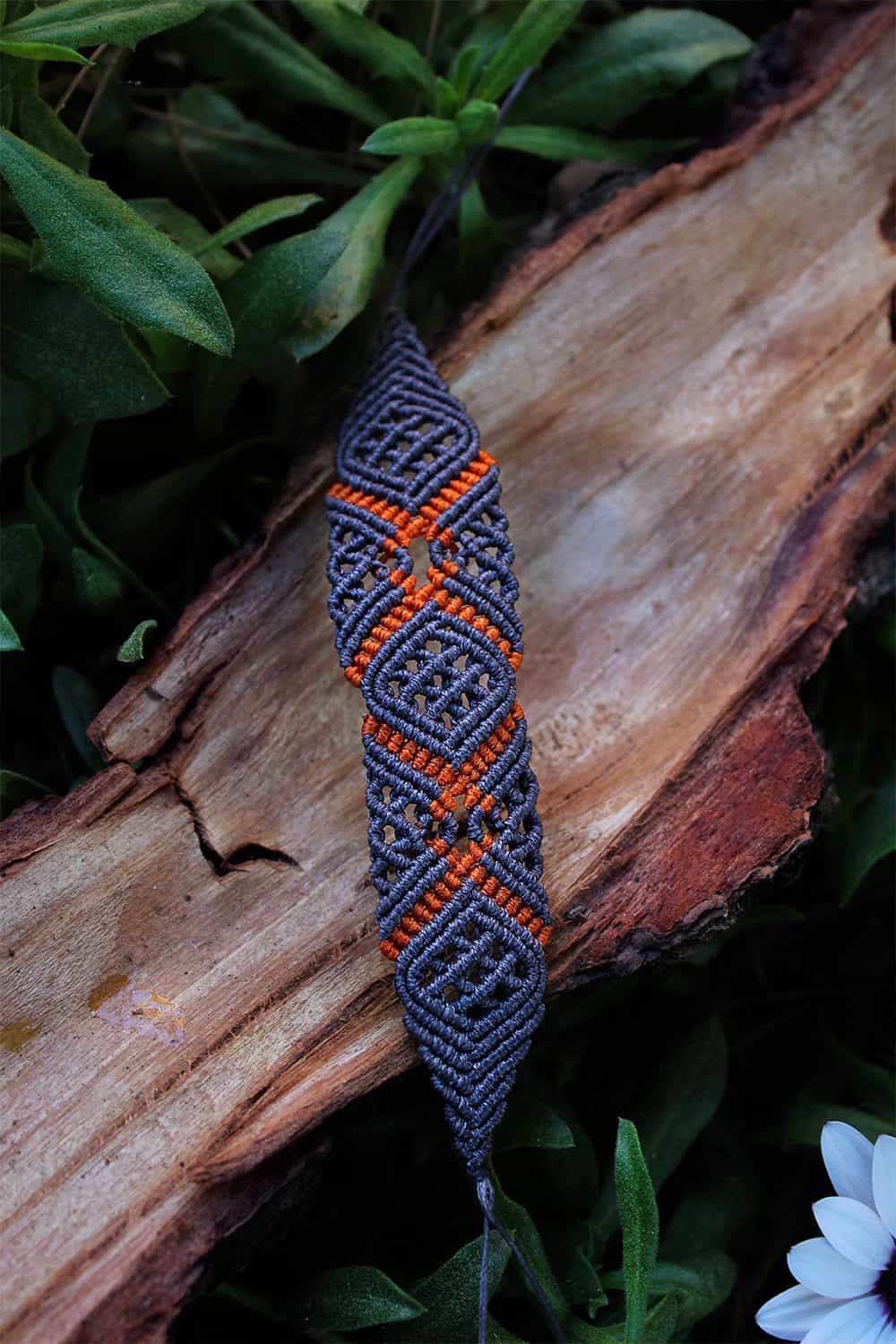Beautiful aegeus handmade bracelet. Macrame is a technique that gives you the opportunity to create beautiful shapes and designs by knitting, using threads. These threads are 100% hypoallergenic and extremely durable. The colours are never fade out over the years due to the quality of the thread. For aegeus bracelet we used orange and dark blue colours of thread.