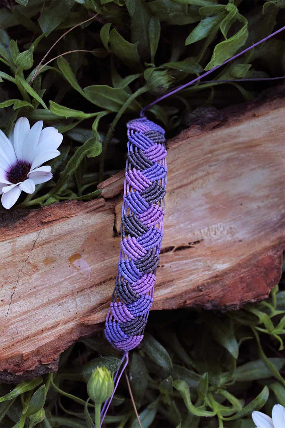Beautiful aileen handmade bracelet. Macrame is a technique that gives you the opportunity to create beautiful shapes and designs by knitting, using threads. These threads are 100% hypoallergenic and extremely durable. The colours are never fade out over the years due to the quality of the thread. For aileen bracelet we used grey,purple and lilac colours of thread.