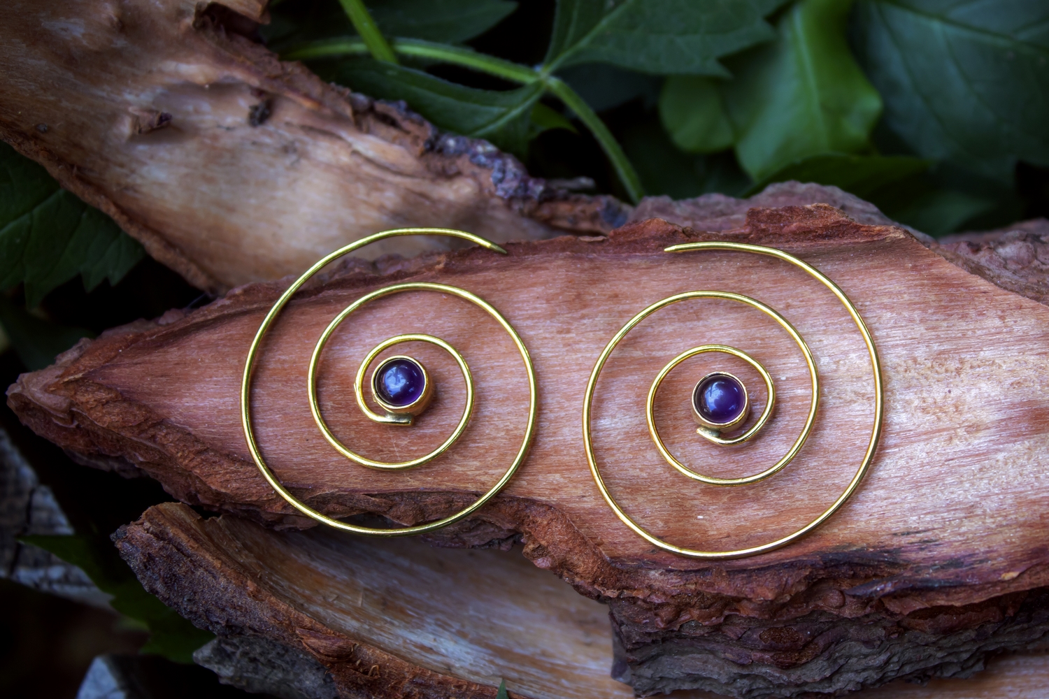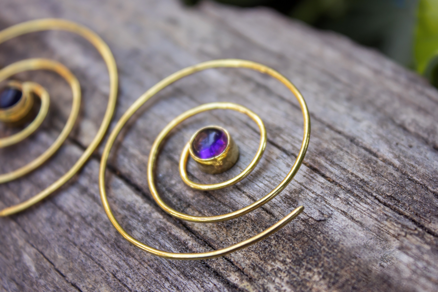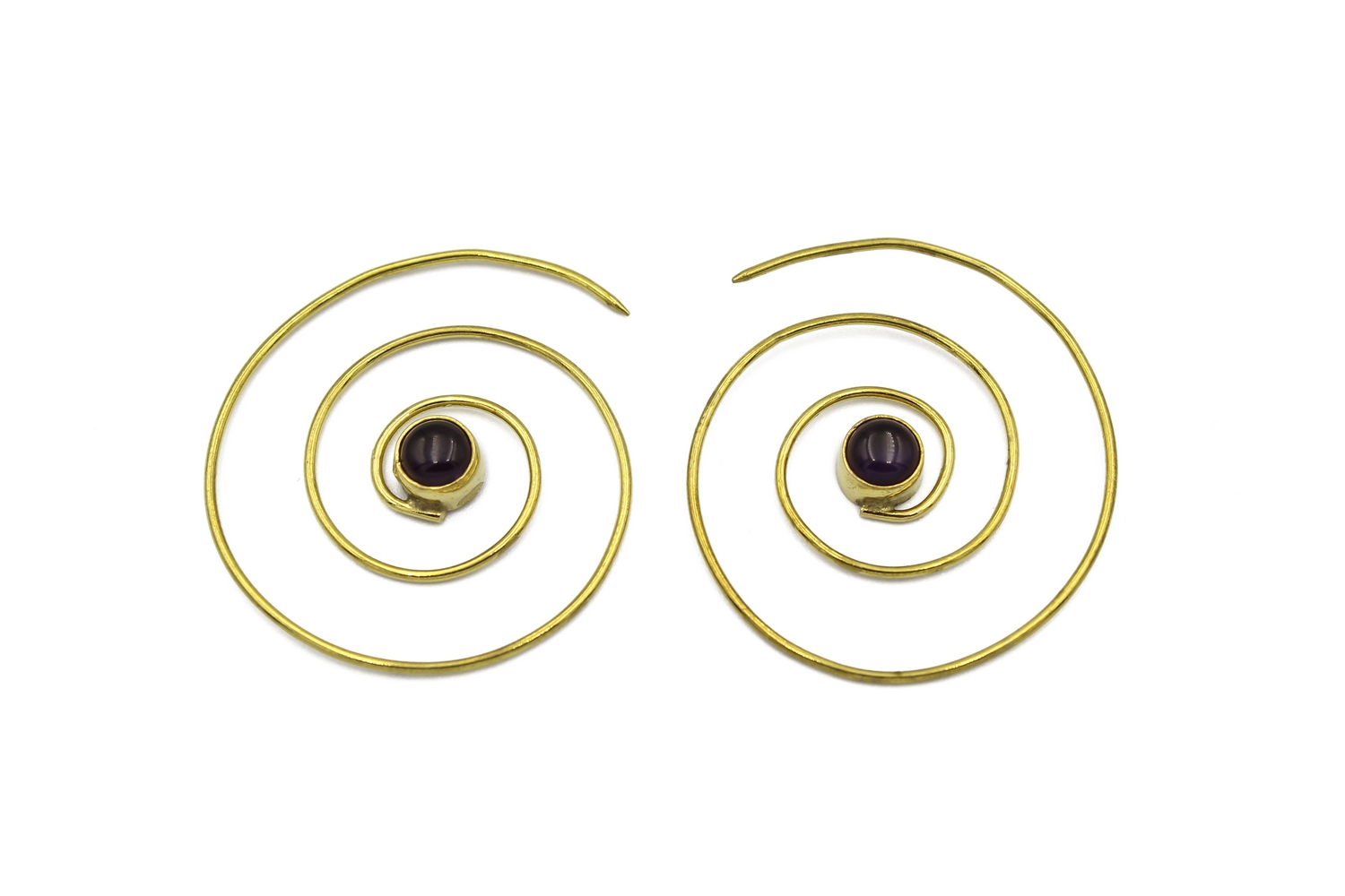 Elegant Andromeda brass earrings decorated with genuine crystal clear amethyst semi precious stone. The spiral contains the pattern of the evolution of life. From a small flower to the creation of galaxies everything evolve in a spiral way. In many cultures spiral is a symbol of change and development. This symbol is been shaped in our beautiful Andromeda brass earrings.