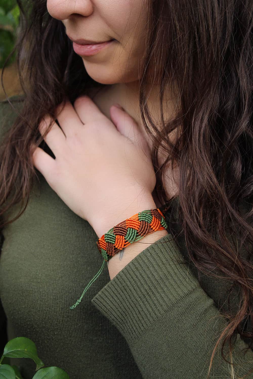 Beautiful Arion handmade bracelet. Macrame is a technique that gives you the opportunity to create beautiful shapes and designs by knitting, using threads. These threads are 100% hypoallergenic and extremely durable. The colours are never fade out over the years due to the quality of the thread. For arion bracelet we used green, brown and orange colours of threads.
