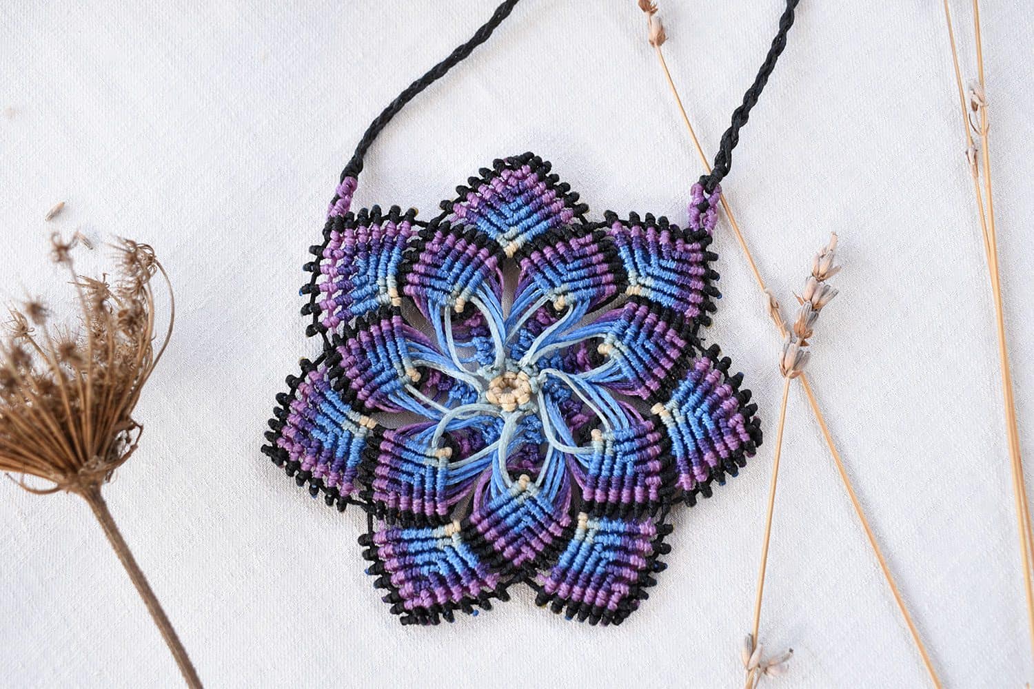 Beautiful cosmic handmade necklace. Macrame is a technique that gives you the opportunity to create beautiful shapes and designs by knitting, using threads. These threads are 100% hypoallergenic and extremely durable. The colours are never fade out over the years due to the quality of the thread.