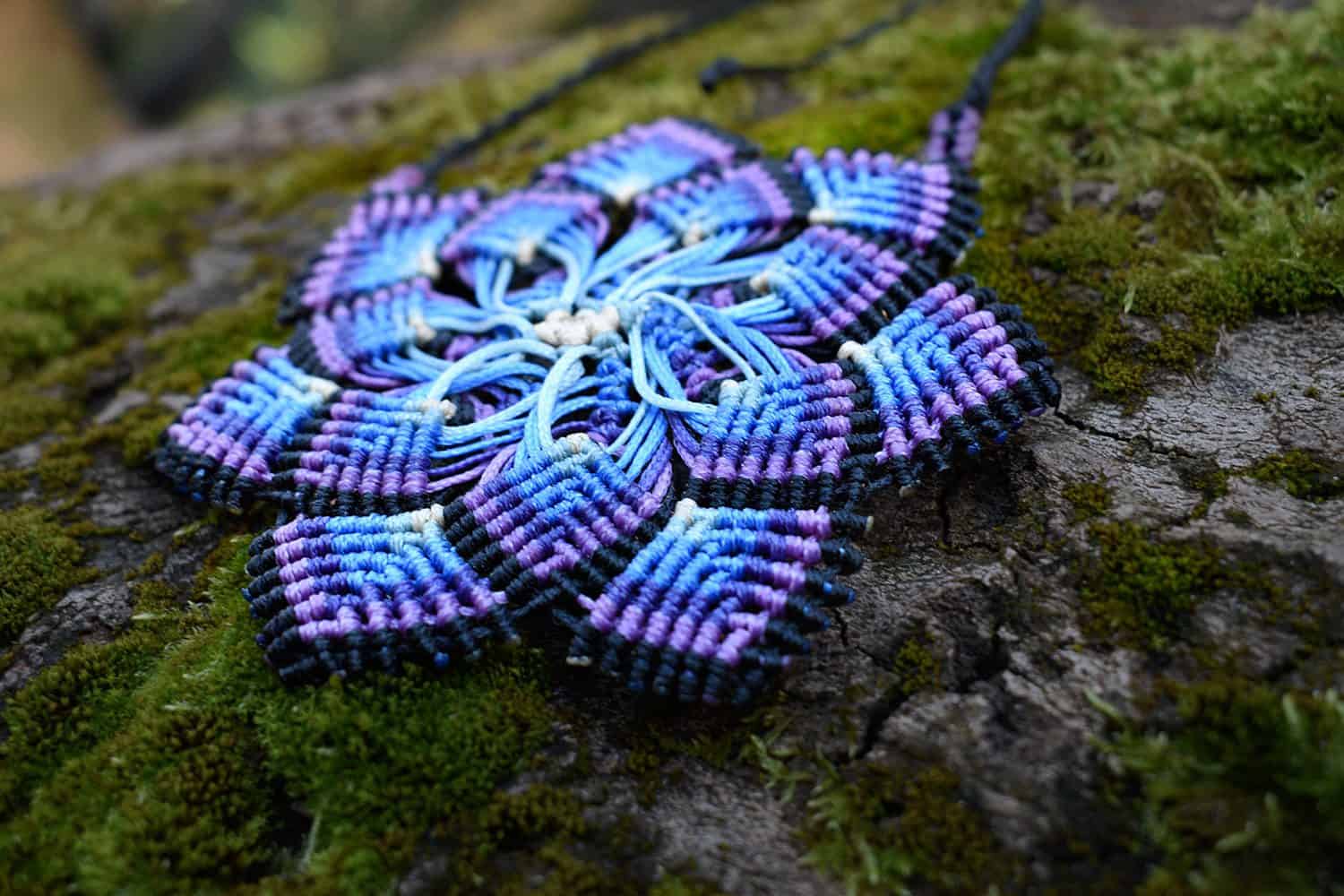 When the simple act of knitting meets fantasy and become an art form. Aesthetic cosmic necklace using the technique of macramé. Every piece is unique and 100% handmade.