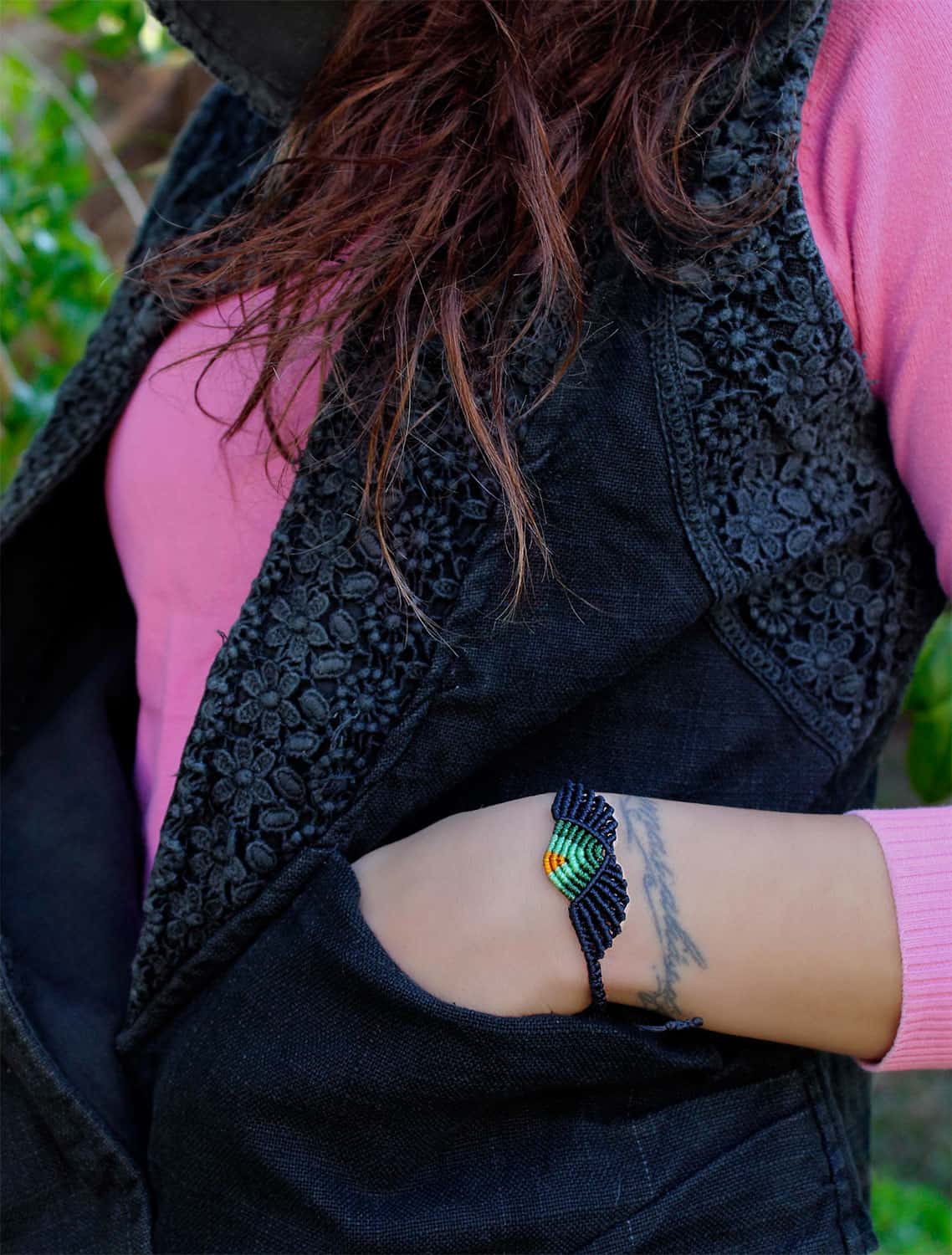 When the simple act of knitting meets fantasy and become an art form. Aesthetic eagle bracelet using the technique of macramé. Every piece is unique and 100% handmade.