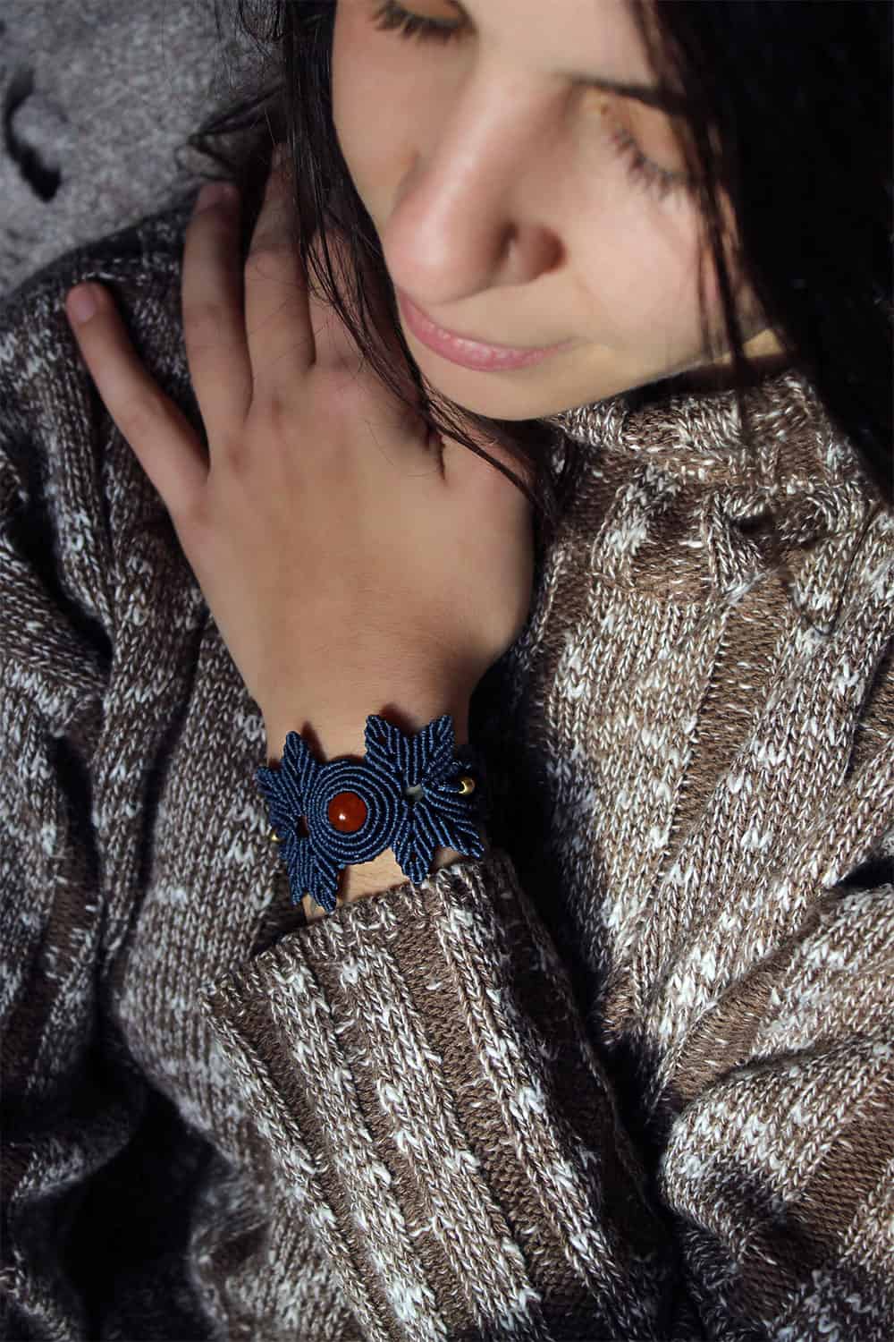 Inspired by mother nature. When the simple act of knitting meets fantasy and become an art form. Aesthetic Eletha bracelet using the technique of macramé. Every piece is unique and 100% handmade.