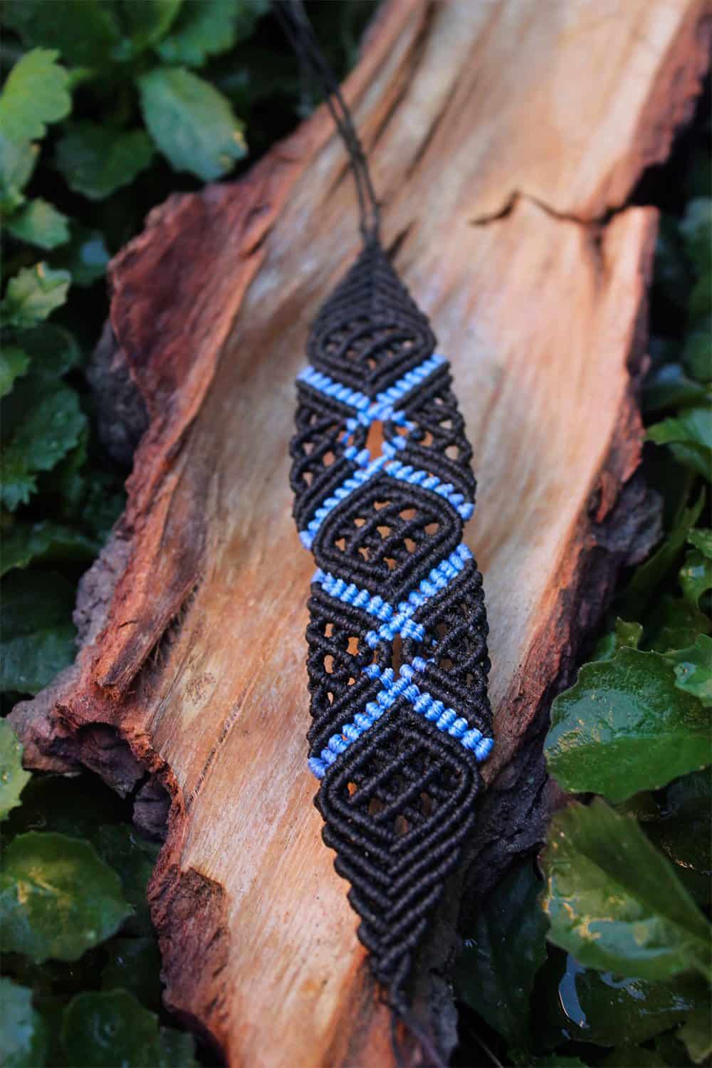 Beautiful gaiana handmade bracelet. Macrame is a technique that gives you the opportunity to create beautiful shapes and designs by knitting, using threads. These threads are 100% hypoallergenic and extremely durable. The colours are never fade out over the years due to the quality of the thread. For gaiana bracelet we used black and blue colours of thread.