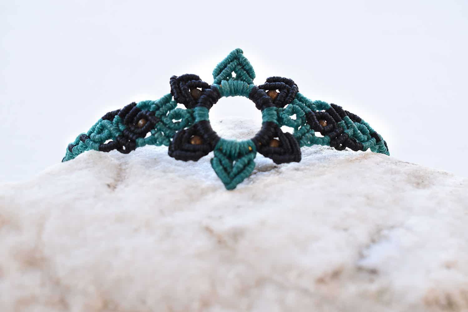 When the simple act of knitting meets fantasy and become an art form. Beautiful hexagon bracelet using the technique of macramé. Every piece is unique and 100% handmade.
