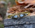Elegant and unique. Shaped and carved in such a detailed way that makes imlaris brass cuff bracelet amazing. Decorated with genuine moonstone or amethyst semi precious stone. A bracelet you will never get bored.