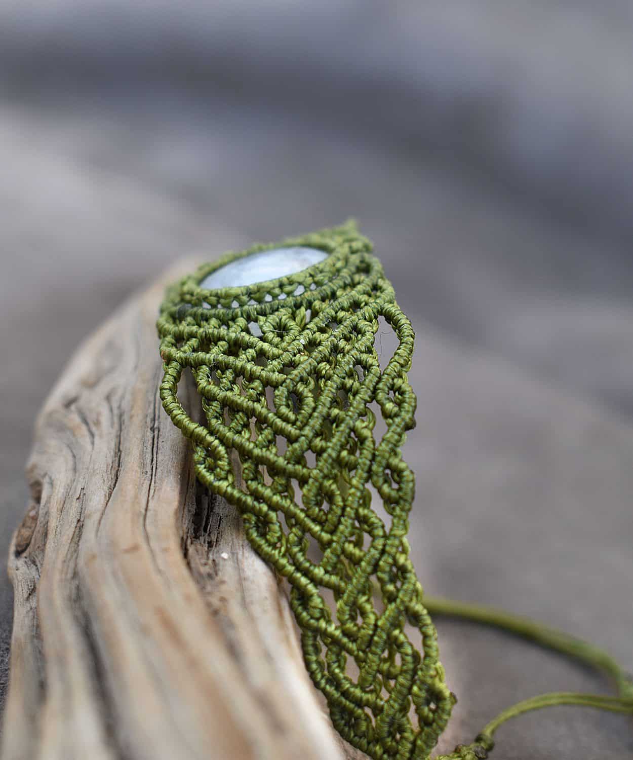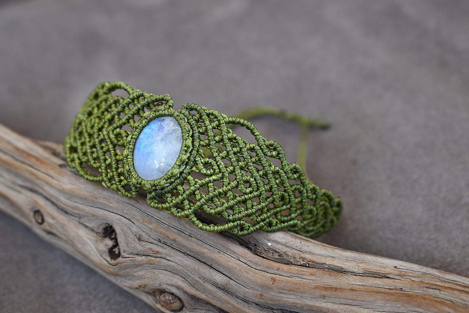 When the simple act of knitting meets fantasy and become an art form. Beautiful moonstone bracelet using the technique of micro macramé. Decorated with genuine crystal clear moonstone semi precious stone. Every piece is unique and 100% handmade.