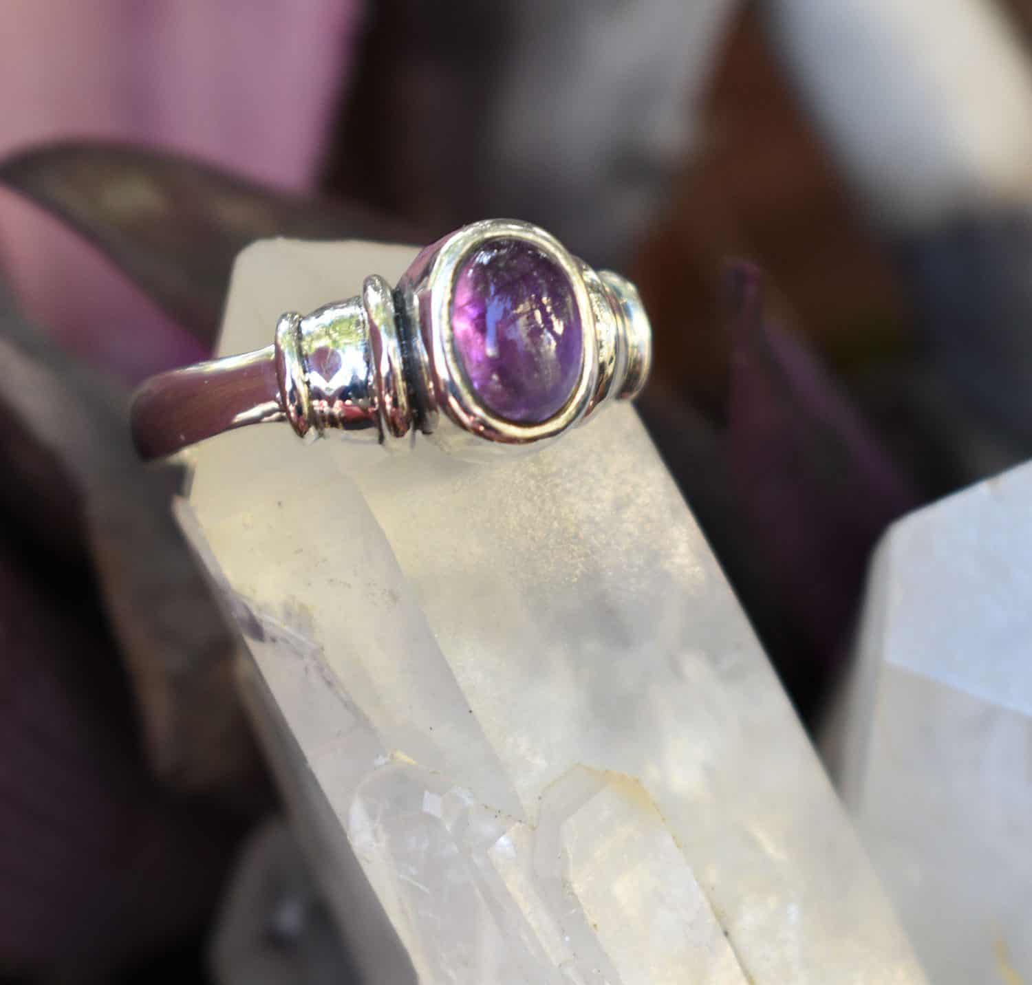 Beautiful Namaka sterling silver 925 ring decorated with genuine amethyst semi precious stone. Shaped and carved at each side of the stone in such a detailed way that makes Namaka ring stunning.