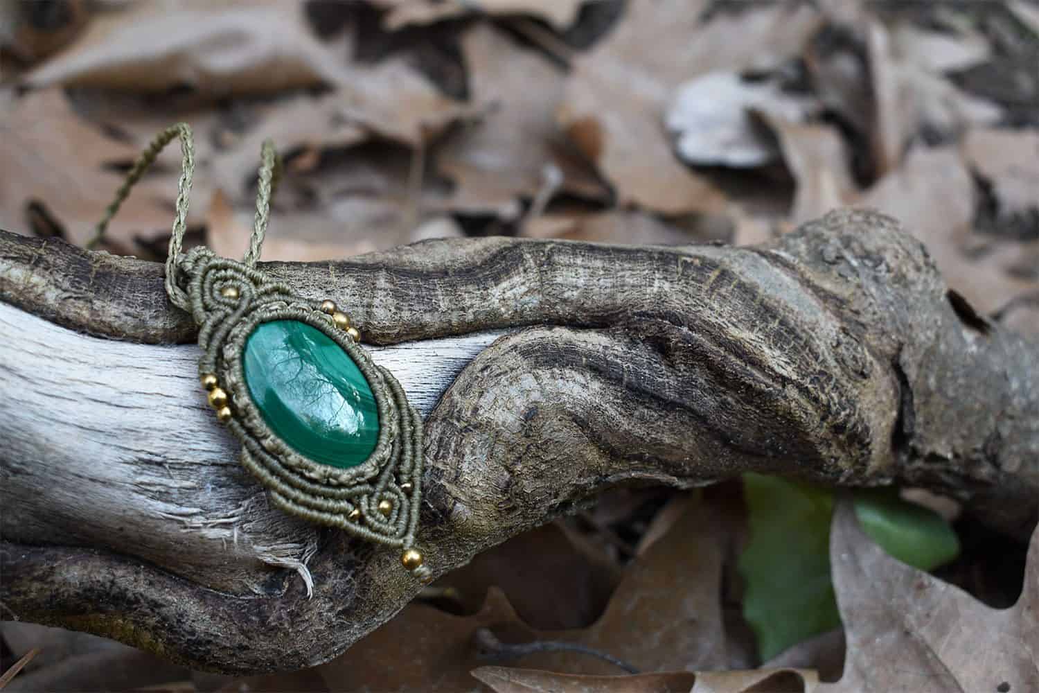 When the simple act of knitting meets fantasy and become an art form. Aesthetic navi necklace using the technique of macramé. Decorated with genuine malachite semi precious stone. Every piece is unique and 100% handmade.