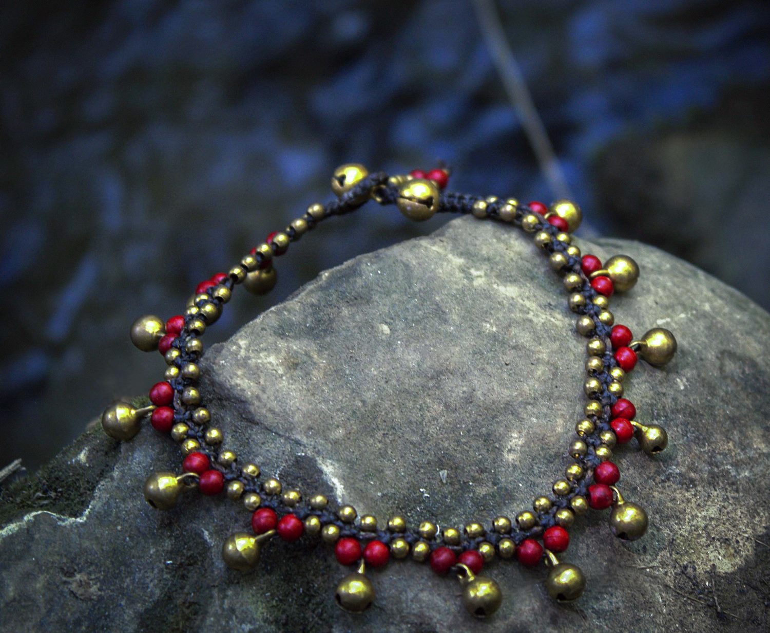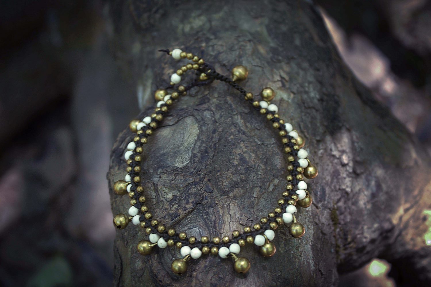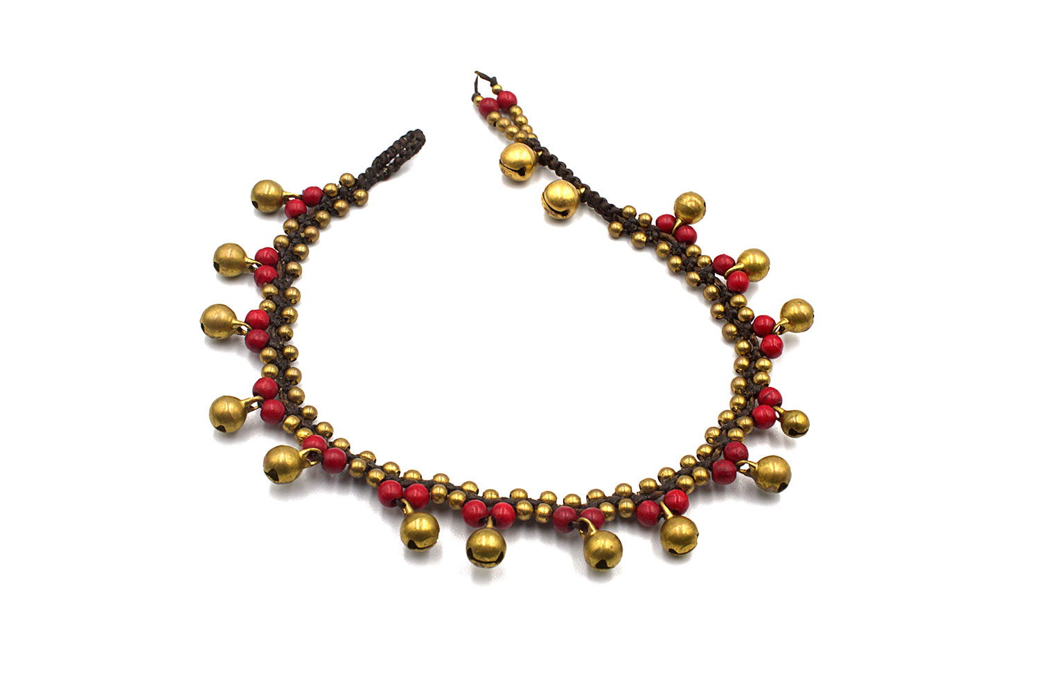 2 different beautiful anklets using best quality waxed thread and brass beads. Each of them has been decorated with 14 brass jingle bells and two jingle bells as clasp. Adjustable in one of two jingle bells. You can find them in 2 options : with coral or howlite beads.