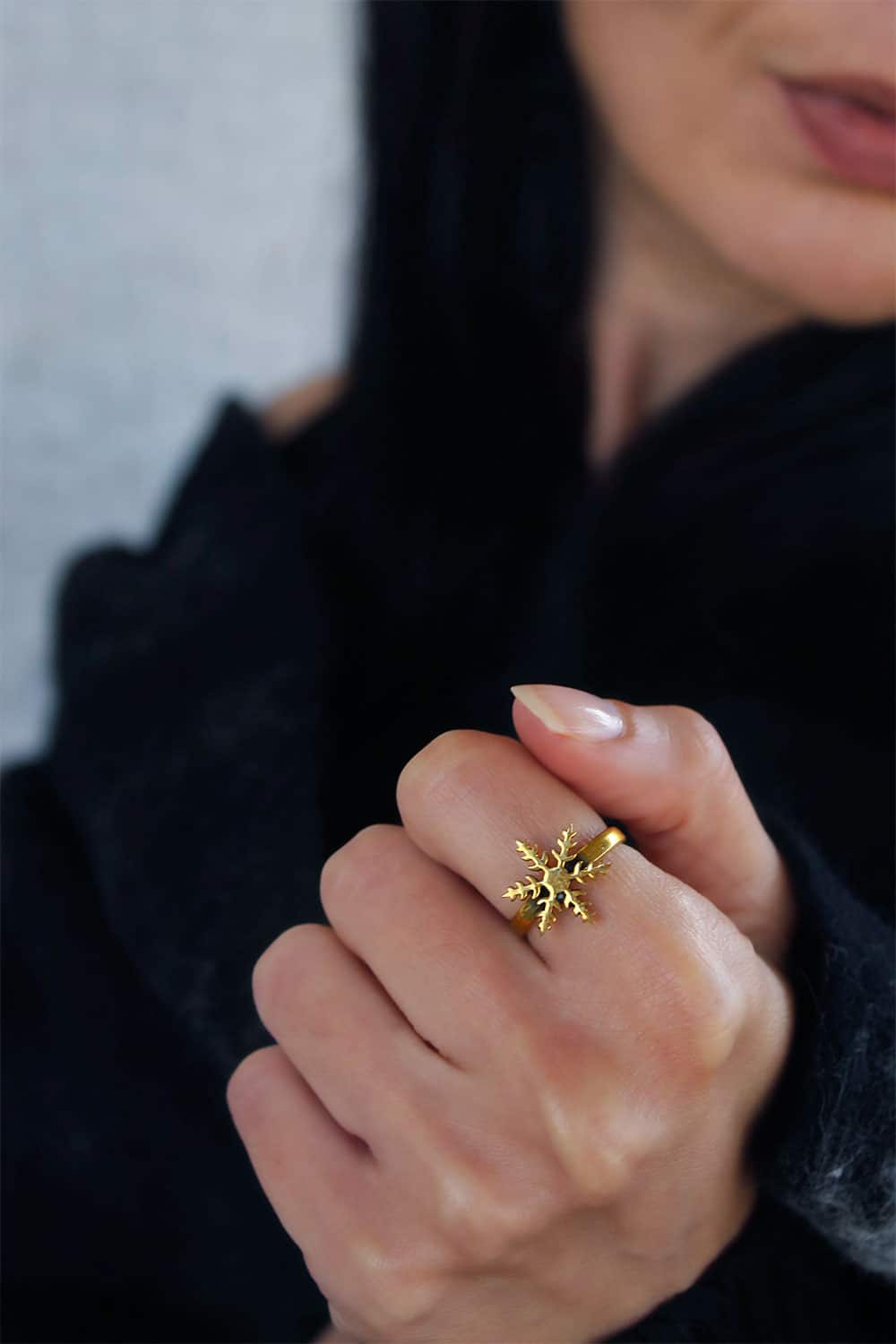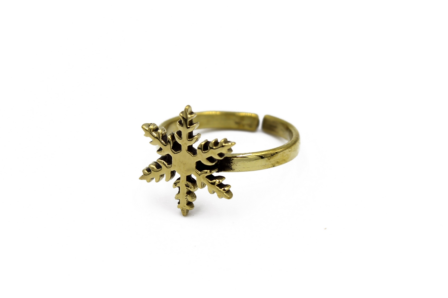 Beautiful brass ring shaped as snowflake in the middle, inspired by mother nature.