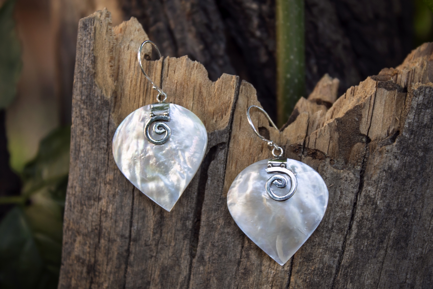 Mother of pearl is one of the most stunning miracles of mother nature. The lucent iridescent white colour of the shells reflect the pristine natural environment in which they are formed. Shaped and carved in such a way that makes Spiral heart sterling silver 925 earrings amazing.