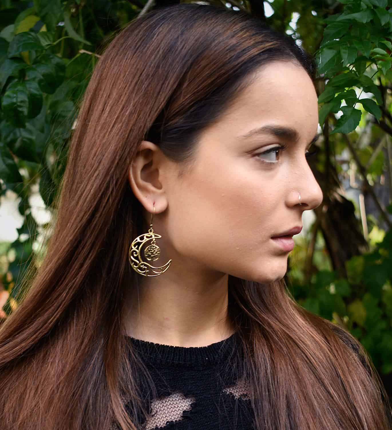 Εντυπωσιακά σκουλαρίκια από ορείχαλκο σε σχήμα φυλετικού φεγγαριού με μοναδικό σχήμα και σχέδιο. Πολύ εύκολα στο καθάρισμα και τη συντήρηση όταν χρειάζεται.