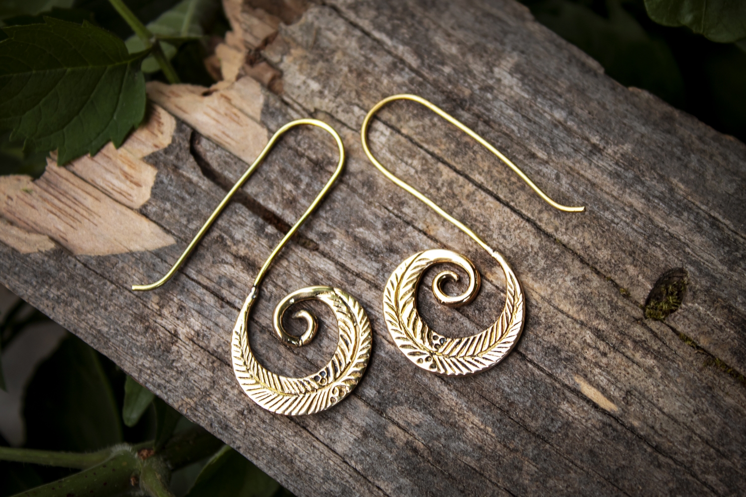 Our Urania brass earrings will travel you throught time. Shaped and carved in a stunning fantasy way. Feel the vibrations of the past with our Urania earrings.