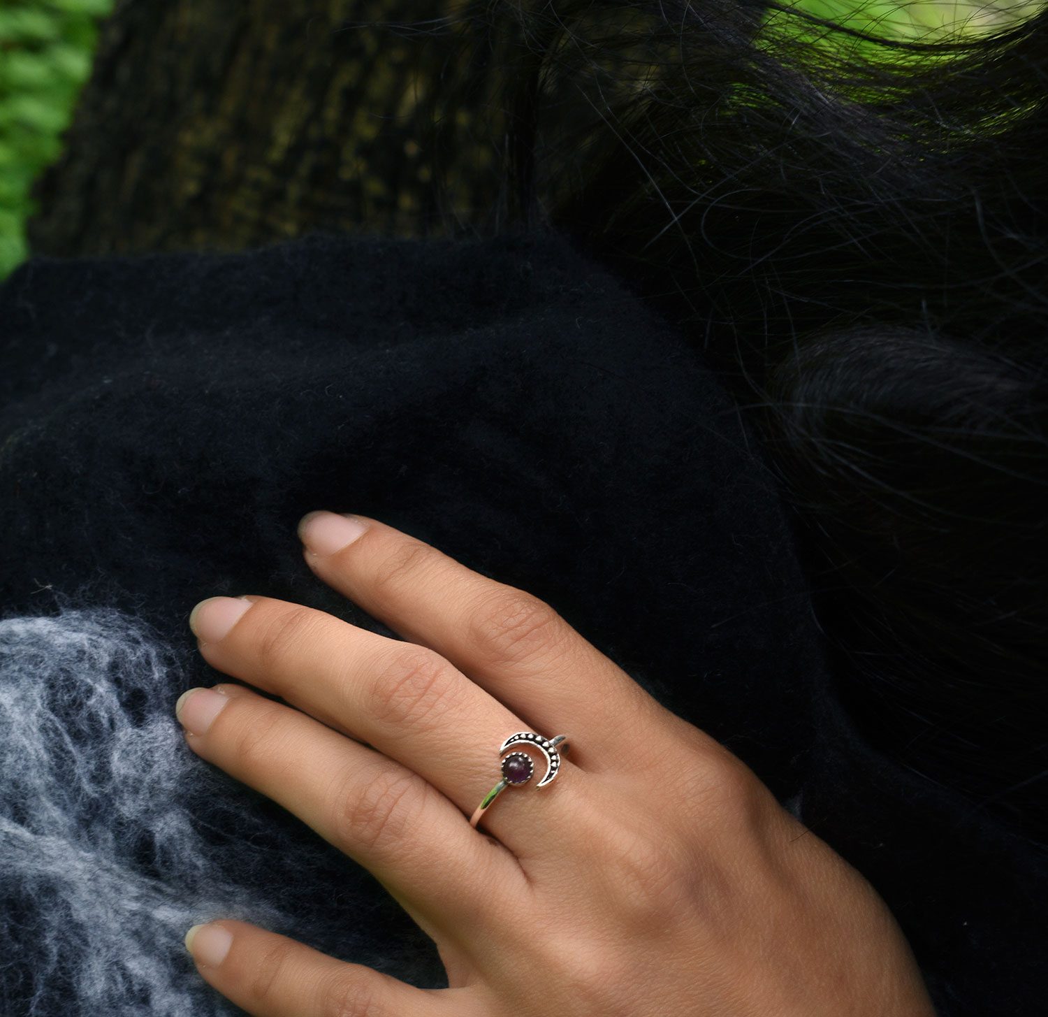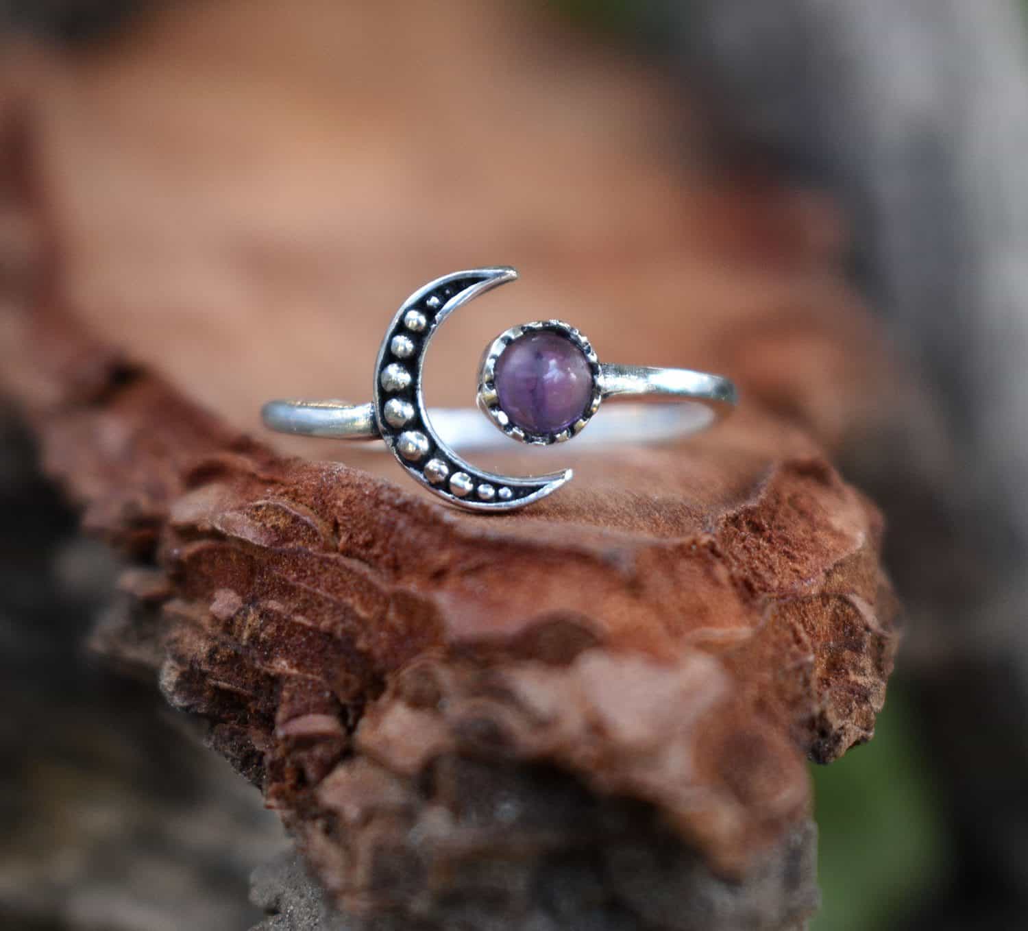 Silver plated Vesper ring. Decorated with amethyst or garnet gemstone. Very easy to clean and maintain when you need.