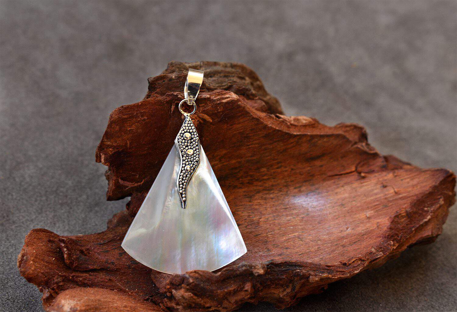 The Mother of pearl natural shell is one of the most stunning miracles of mother nature. Combined with sterling silver 925, this beautiful vilya pendant expand the senses towards calmness and tranquility. You can wear it by daytime or night.